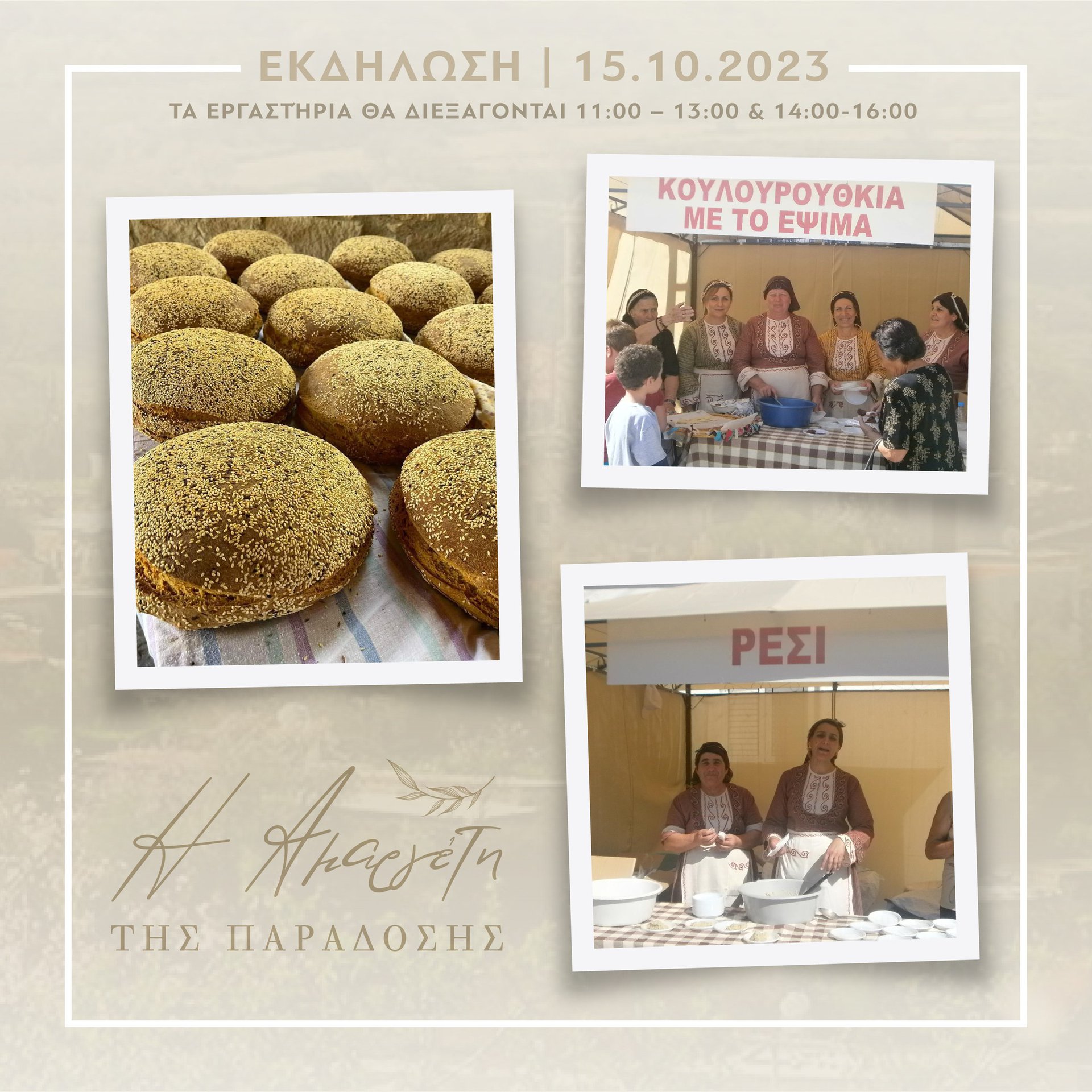 - Επισκέψιμα βιωματικά εργαστήρια οινογαστρονομίας και χειροτεχνίας. Ψυχαγωγία του κοινού και ενεργή εμπλοκή του. Θα υπάρχουν εργαστήρια Μεταξιού, Υφαντικής, Αγγειοπλαστικής, Ζωγραφικής, Ψαθοπλεκτικής, Κεντήματα. Όπου και θα δίνεται η ευκαιρία στους παρευρισκόμενους να συμμετέχουν και να λαμβάνουν μέρος στα εργαστήρια.