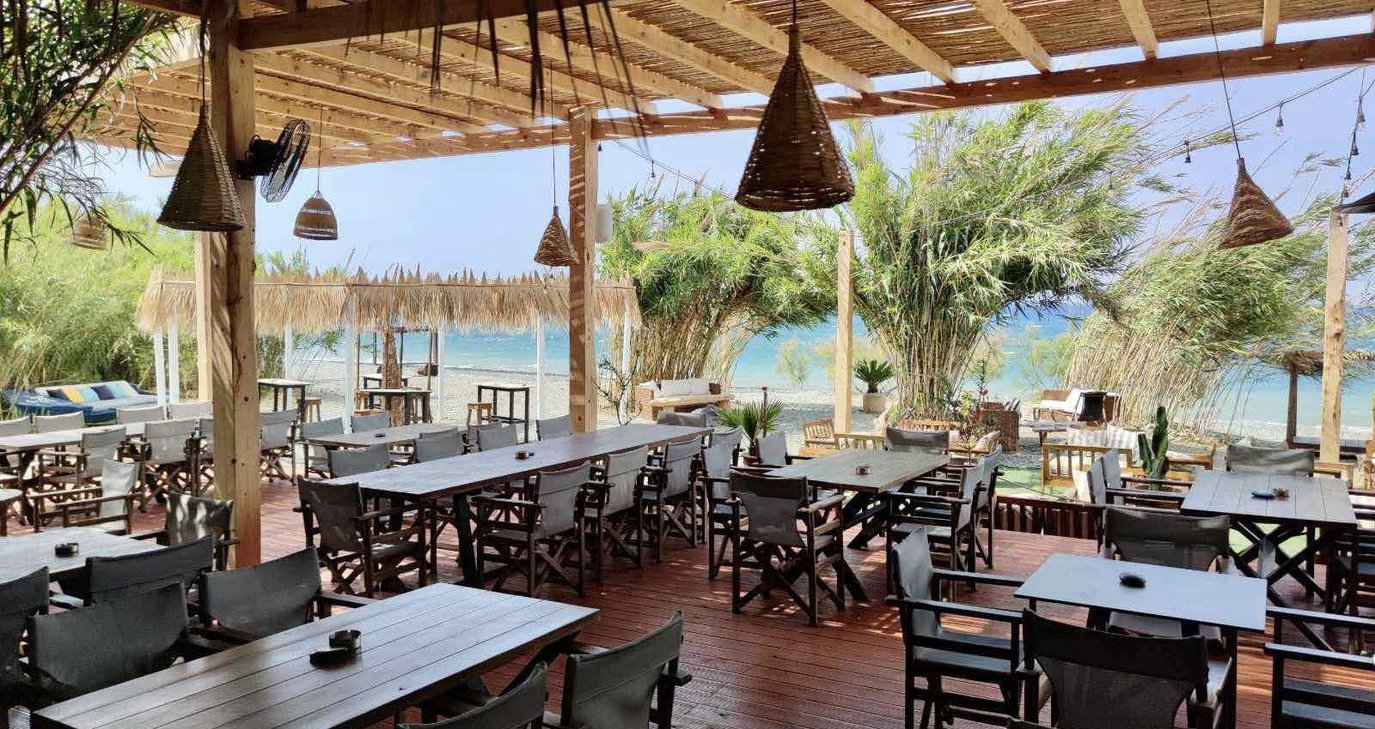 Πρόκειται για ένα χώρο χωρίς φτιασίδια, απόλυτα φυσικός με ξαπλώστρες, γκαζέπο, ξύλινο μπαρ, καρέκλες και τραπέζια κάτω από ψάθινη τέντα.