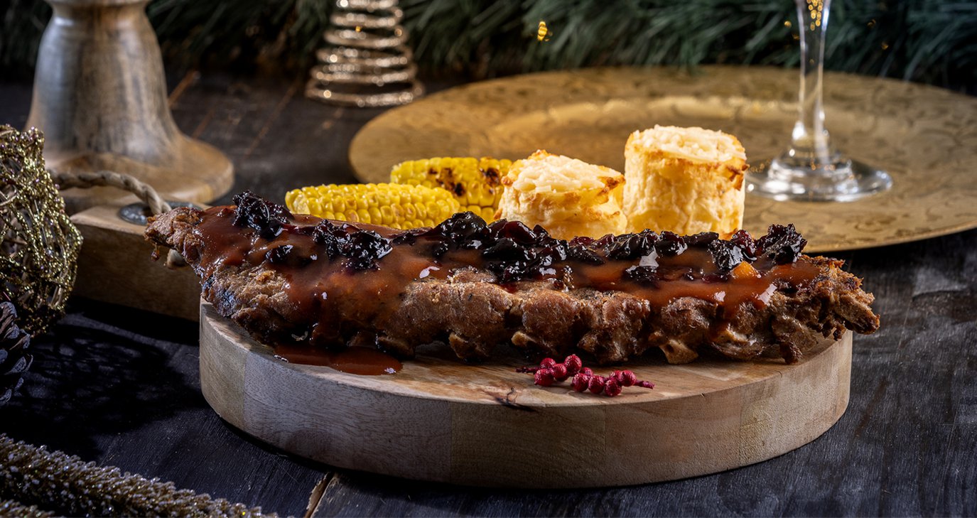 Premium πιάτα όπως Black Angus Steaks, χοιρινά παϊδάκια και ζουμερή πάπια, επικαλυμμένα με το νέο BOURBON CHERRY GLAZE, φτιαγμένο με Jack Daniel’s® Tennessee Honey, σάλτσα BBQ και κομματάκια από μαυροκέρασο. Όλα αυτά σερβισμένα με πατάτες au Gratin και καλαμπόκι ψημένο στη σχάρα.