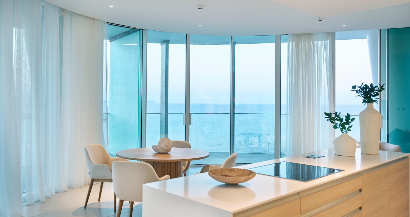 Τα διαμερίσματα διαθέτουν μοντέρνο και έξυπνο open plan σχεδιασμό, ο οποίος μεγιστοποιεί τη διάχυση φυσικού φωτός καθώς και την πρόσβαση σε μαγευτική θέα. Ενδεικτικά, το σαλόνι έχει γυάλινες μπαλκονόπορτες που είναι ειδικά σχεδιασμένες για να ανοίγουν με τέτοιο τρόπο έτσι ώστε να ενώνεται ο χώρος του σαλονιού και της καλυμμένης βεράντας. Λαμβάνοντας υπόψη τα υψηλότερα πρότυπα του σύγχρονου αρχιτεκτονικού σχεδιασμού, την άνεση, την ανθεκτικότητα και τη λειτουργικότητα, τα διαμερίσματα είναι σχεδιασμένα με υψηλής ποιότητας υλικά και τεχνικές προδιαγραφές. Όλα τα διαμερίσματα διαθέτουν πιστοποίηση ενεργειακής απόδοσης Α, ενσωματώνοντας παράλληλα τεχνολογία και εξοπλισμό αιχμής, συμβάλλοντας στη μείωση του περιβαλλοντικού αποτυπώματος.