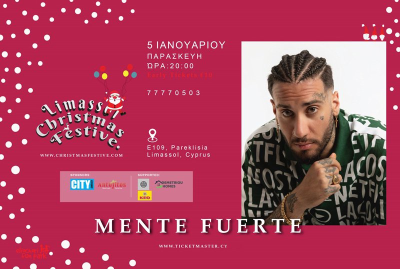 Μια πρωτοποριακή ιδέα υλοποιείται στο Limassol Christmas Festival ξεκινά στις 8 Δεκεμβρίου 2023 έως και τις 31 Ιανουαρίου 2024 στο Eliochori Fun Park στην Παρεκκλησιά. Ένα πολυδιάστατο Φεστιβάλ με θεματολογία τα Χριστούγεννα, που θα προσφέρει στους επισκέπτες συναυλίες αγαπημένων Eλλήνων καλλιτεχνών, λούνα παρκ, shows και Χριστουγεννιάτικο Μάρκετ.
