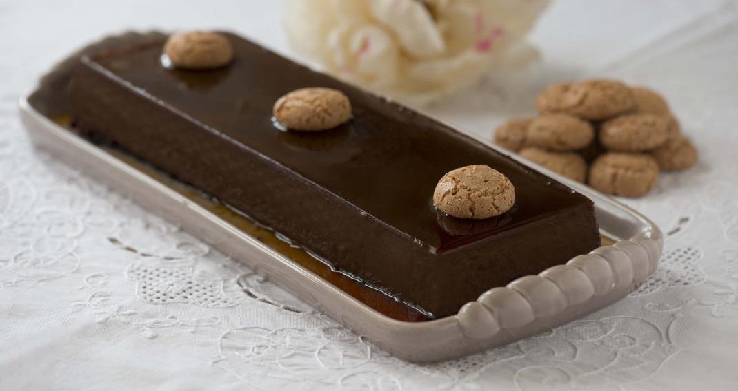 - Ξεφορμάρετε το Bonet και βάλτε το σε πιάτο σερβιρίσματος από την ανάποδη πλευρά. Διακοσμήστε με amaretti. Καλή απόλαυση!