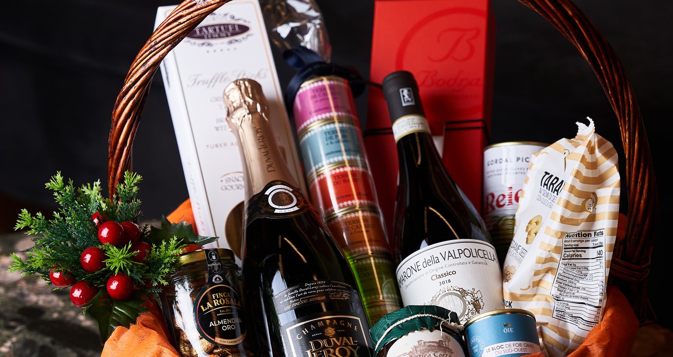 Επίλεξε από έτοιμες προτάσεις ή δημιιούργησε κάτι που να ταιριάζει στα γούστα και τον προϋπολογισμό σου. Στο καλάθι μπορείς να επιλέξεις κρασί, αφρώδες ή αποστάγματα, συνοδευμένα με τα κατάλληλα εδέσματα και επιδέξια διακοσμημένα για να δημιουργήσεις ατμόσφαιρα γιορτών.