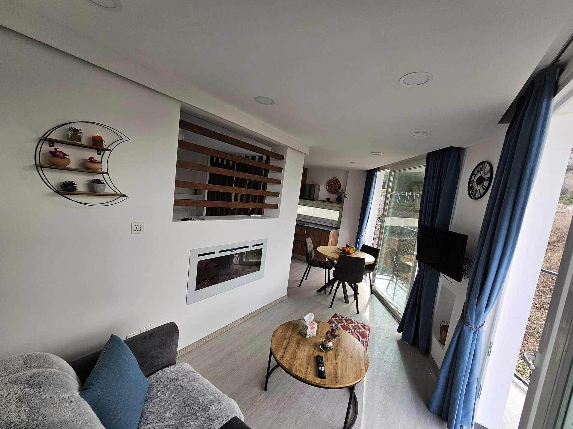 Η Valley suite είναι μοντέρνα, διαθέτει ένα διπλό κρεβάτι, καθιστικό με τζάκι, πλήρως εξοπλισμένη κουζίνα αλλά και μία μικρή βεράντα για να απολαμβάνεις πρωινό με θέα!