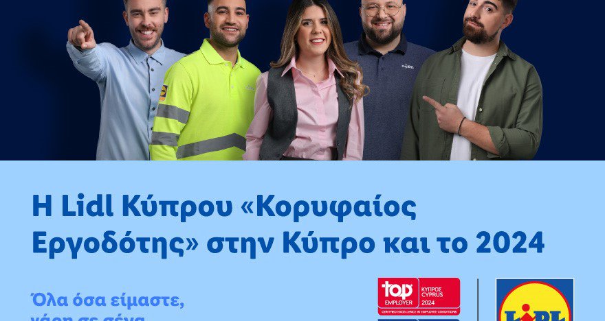 Η Lidl Κύπρου αναδεικνύεται Κορυφαίος Εργοδότης για 7η συνεχόμενη χρονιά σε Κύπρο και Ευρώπη, σύμφωνα με τα αποτελέσματα του διεθνώς αναγνωρισμένου ανεξάρτητου οργανισμού Top Employers Institute. Η διαδικασία της πιστοποίησης περιλαμβάνει ανάλυση των δράσεων των εταιρειών σε θεματολογίες όπως προσέλκυση υποψηφίων, προγράμματα εκπαίδευσης και ανάπτυξης, πολιτικές και δράσεις well-being, δράσεις ισότητας των φύλων αλλά και την εξασφάλιση ενός συμπεριληπτικού εργασιακού περιβάλλοντος απαλλαγμένου από διακρίσεις.
