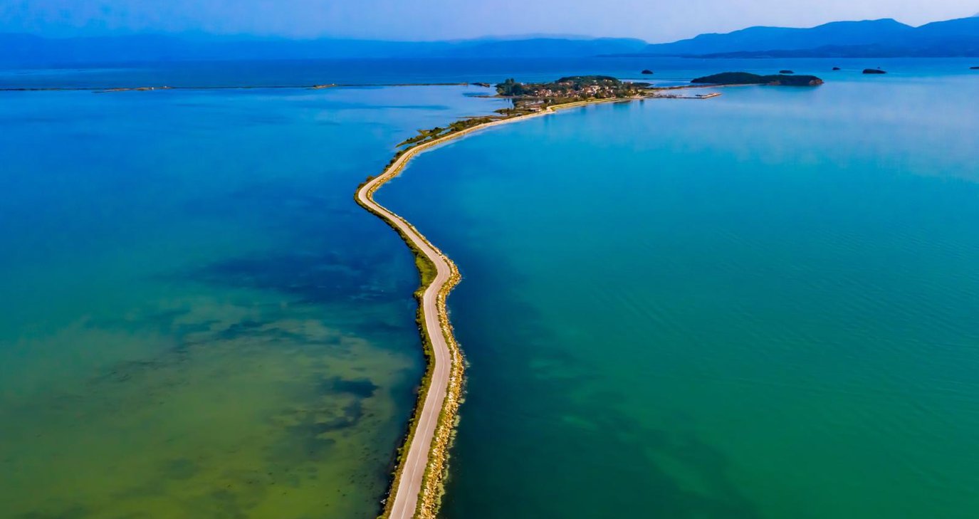 Μια στενή λωρίδα ασφαλτοστρωμένης γης κόβει στα δύο τα νερά του Αμβρακικού Κόλπου και χαρίζει στους ταξιδιώτες μια μοναδική εμπειρία.