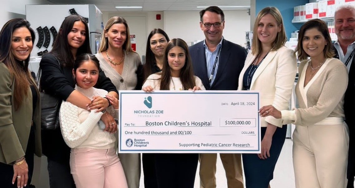 Το Συμβούλιο του Nicholas Zoe Foundation (NZF) παρέδωσε την πρώτη επιταγή των 100.000 δολαρίων εις μνήμην του Νικόλα Αρτεμίου στην Ερευνητική Μονάδα του Παιδιατρικού Νοσοκομείου της Βοστώνης στις 18 Απριλίου για ολοκλήρωση του ερευνητικού έργου που αντικείμενο έχει την ανάπτυξη μιας απλής εργαστηριακής εξέτασης αίματος για παρακολούθηση της ανταπόκρισης στην θεραπεία παιδιών που πάσχουν από Σάρκωμα Ewing και άλλες ογκολογικές παθήσεις όπως Νευροβλάστωμα και Ραβδομυοσάρκωμα.