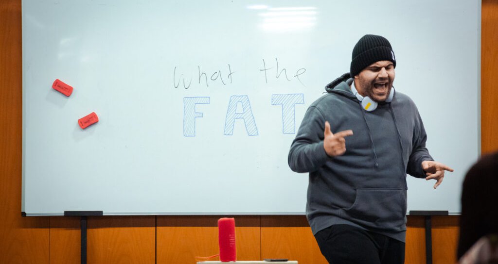 H συγγραφή του έργου γεννήθηκε μέσα από το ίδιο το πρόγραμμα του Young Europe IV που στόχο είχε την ανάδειξη μη κυρίαρχων φωνών, στο πλαίσιο του οποίου παρουσιάστηκε η παράσταση. Μαζί με το «FAT» γεννήθηκαν άλλα επτά θεατρικά κείμενα που έλαβαν χώρα ως classroom plays στο Φεστιβάλ.