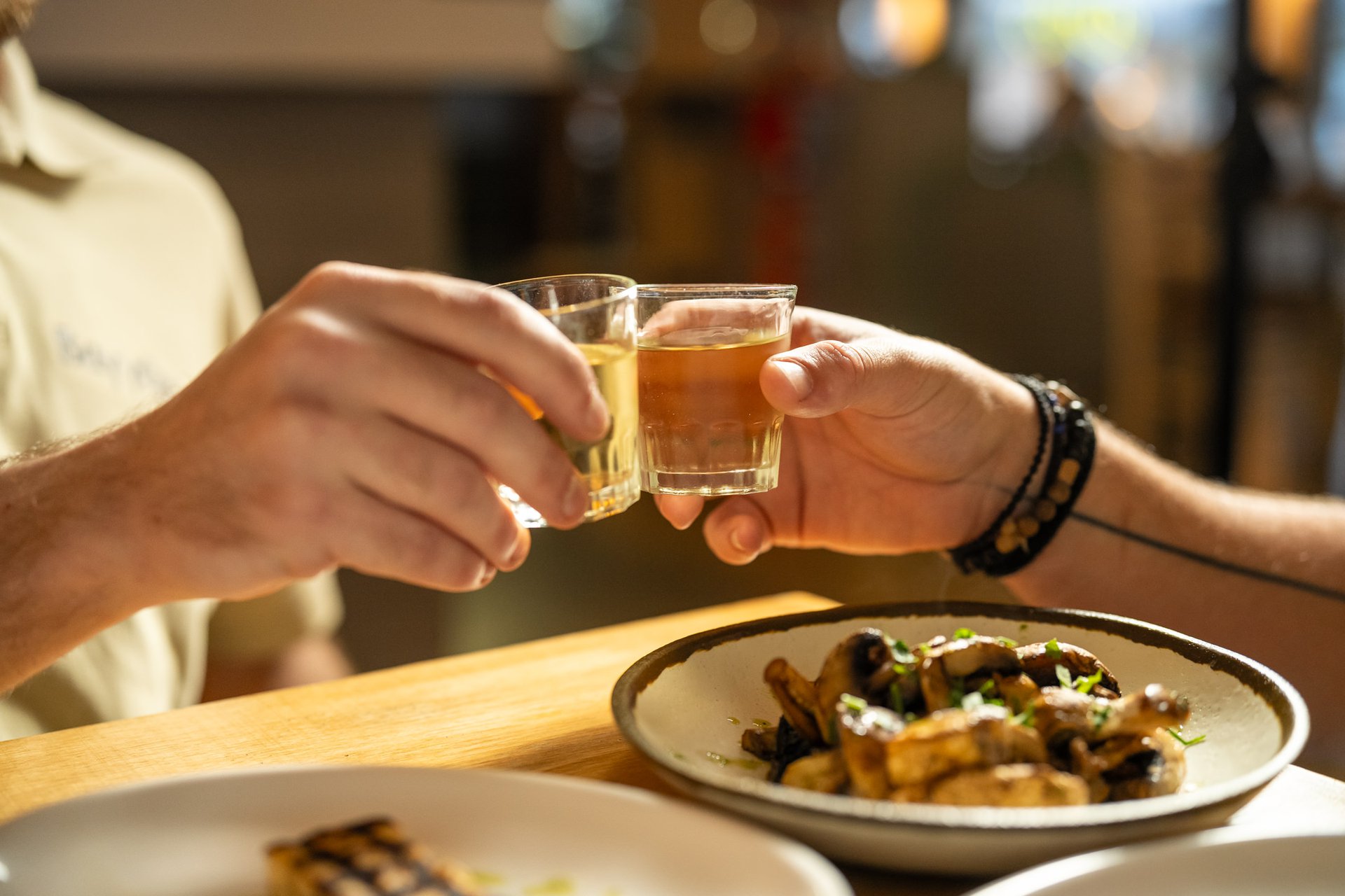 Αν είστε λάτρεις των cocktail, δοκιμάστε τη Χωριάτικη Μαργαρίτα (Village Margarita) με Ζιβανία, Mezcal και γκασπάτσο χωριάτικης σαλάτας.
