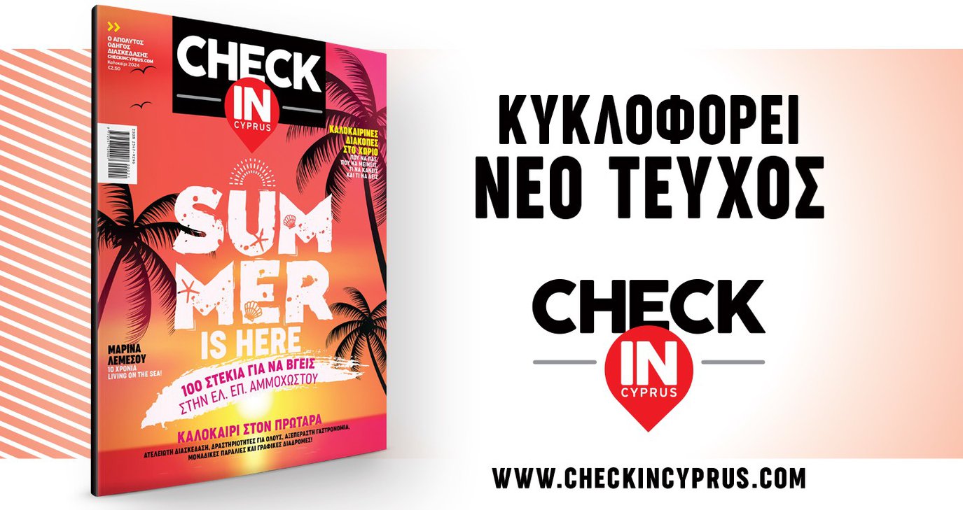 Το Check in Cyprus κυκλοφορεί, αυτή την Κυριακή, 16 Ιουνίου με την εφημερίδα «ΣΗΜΕΡΙΝΗ». και στη συνέχει στα περίπτερα στην τιμή των €2.50.