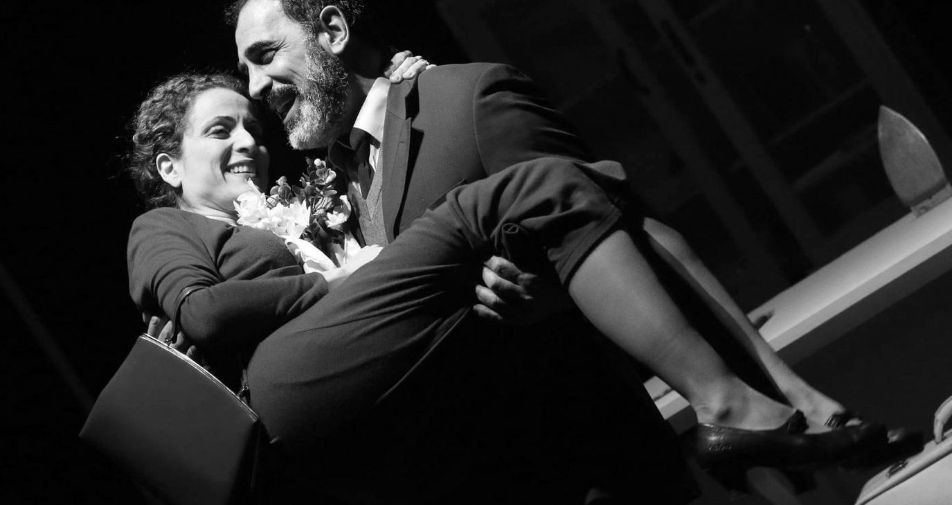 Επί σκηνής βρίσκονται ο ηθοποιός και σκηνοθέτης της παράστασης Νεοκλής Νεοκλέους και η Χριστίνα Χριστόφια.