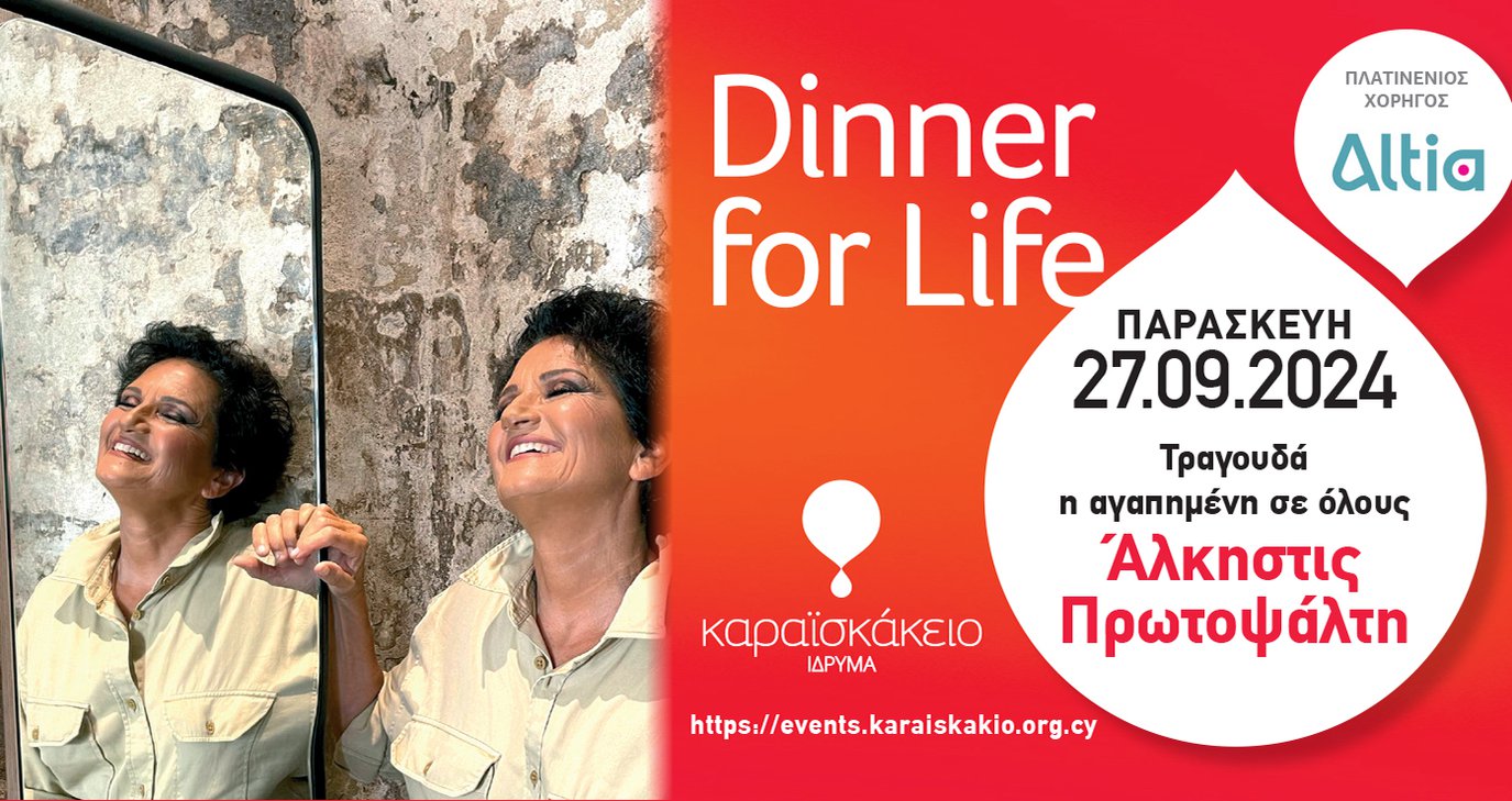 Tο Καραϊσκάκειο Ίδρυμα διοργανώνει και φέτος με αφορμή το Σεπτέμβριο μήνα λευχαιμίας, την Παρασεκυή 27 Σεπτεμβρίου 2024, στις 20:00, στους Κήπους της οικίας του κ. Νικόλα & Γιώτας Παπαδόπουλου, το Φιλανθρωπικό Δείπνο «Dinner For Life». Η όλη εκδήλωση τελεί υπό την αιγίδα της οικοδέσποινας.