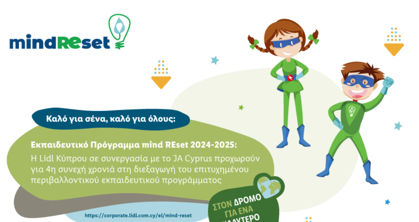 Το εκπαιδευτικό περιβαλλοντικό πρόγραμμα «mind REset» αποτελεί μία πρωτοβουλία της Lidl Κύπρου σε συνεργασία με το Junior Achievement Κύπρου, που στοχεύει στην ενημέρωση και εξοικείωση των νέων με θέματα που αφορούν το περιβάλλον, την καινοτομία και την πράσινη επιχειρηματικότητα. Πρόκειται για ένα διασκεδαστικό και διαδραστικό εκπαιδευτικό πρόγραμμα, το οποίο πραγματοποιείται από το 2021 και προσφέρει μία σειρά από 5 εκπαιδευτικές ενότητες, σε μαθητές της Ε’ και Στ’ Δημοτικού Σχολείου, και της Α’ και Β’ Γυμνασίου. Το πρόγραμμα εντάσσεται στο ευρύτερο πλαίσιο της διεθνούς στρατηγικής “REset Plastic” του ομίλου Schwarz στον οποίο ανήκει η Lidl, και των 5 πεδίων δράσης του, “REduce, REdesign, REcycle, REmove, REsearch”.
