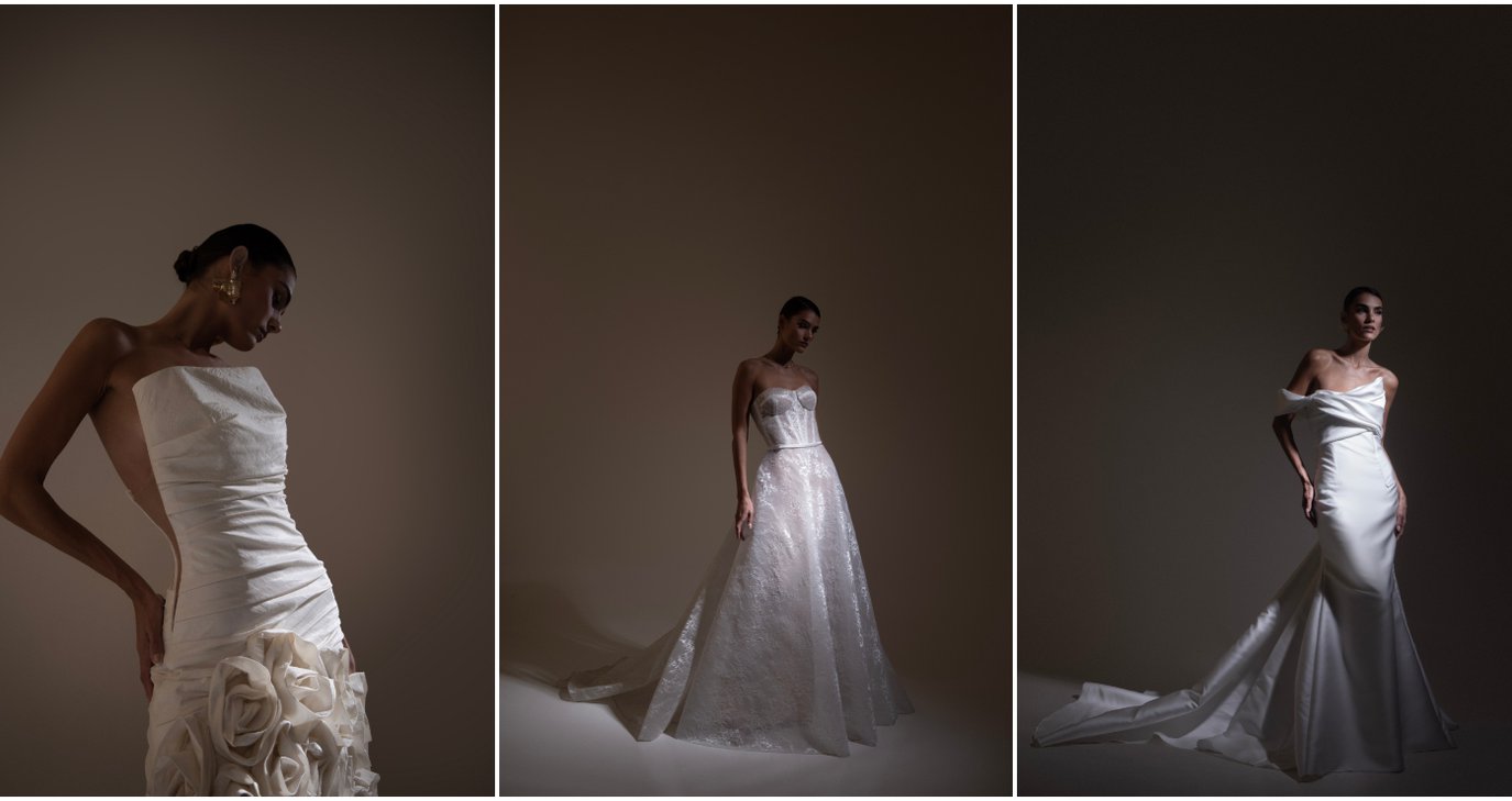 Τα στράπλες νυφικά κατέχουν κυρίαρχο ρόλο στη νέα Bridal Collection 2025 της Έλενας Στρογγυλιώτου και παρουσιάζονται σε πολλές διαφορετικές εκδοχές και υφάσματα. Αποσπώμενα μανίκια με αραχνούφαντα υφάσματα, μεταμορφώνουν τις στράπλες δημιουργίες δίνοντάς τους μια μοντέρνα πινελιά.