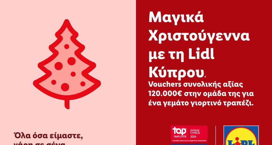 Για τη Lidl Κύπρου, τα Χριστούγεννα δεν είναι μόνο μια γιορτή, αλλά μία ευκαιρία να κάνει τη διαφορά στις ζωές όσων βρίσκονται δίπλα της. Με την καμπάνια «Μαγικά Χριστούγεννα: Όταν οι ευχές γίνονται πραγματικότητα», η Lidl Κύπρου προτρέπει όλους να μοιραστούν τη χαρά των γιορτών και να δημιουργήσουν ξεχωριστές στιγμές, αποδεικνύοντας πως τα Χριστούγεννα είναι πιο όμορφα όταν μοιράζονται.