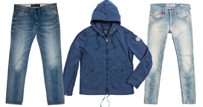 Τα πρώτα που δέχονται αυτή την επιρροή είναι τα πανωφόρια. Τα μπουφάν διαθέτουν φαρδιές, αθλητικές γραμμές και επενδύσεις ζακάρ ή καμουφλάζ σε απροσδόκητους χρωματικούς συνδυασμούς. Χαρακτηριστικό είναι το άνορακ σε σχέδιο καμουφλάζ και indigo αποχρώσεις. Τα σακάκια και τα παντελόνια χάρη στην πρωτοποριακή επίδραση του νερού, καταφέρνουν να αποκτήσουν ένα ματ αποτέλεσμα στο επάνω μέρος και γυαλιστερό προς τα κάτω, ή αναμειγνύουν τα υλικά, τις υφές και τα σχέδια. Το biker jacket αυτή τη σεζόν εμφανίζεται σε μια επικάλυψη γυαλιστερού - ματ denim.