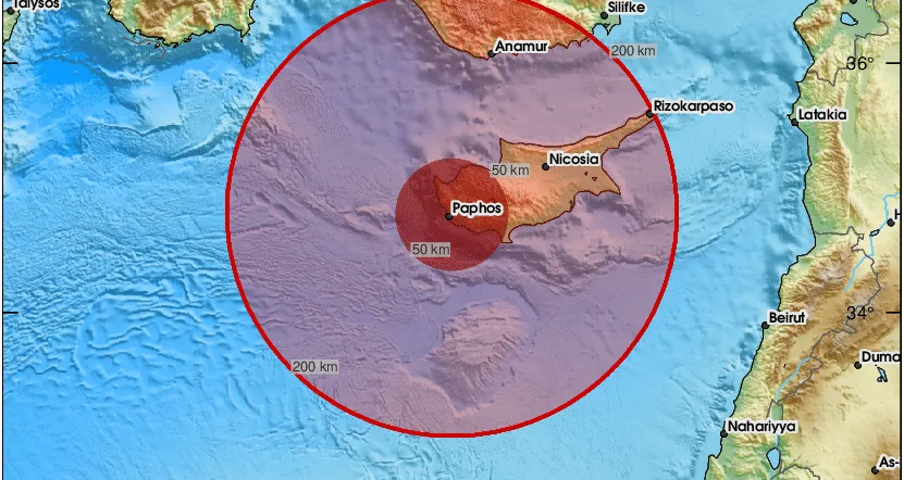 Σύμφωνα με την πρώτη εκτίμηση, το επίκεντρο του σεισμού εντοπίζεται στην περιοχή της Πάφου.