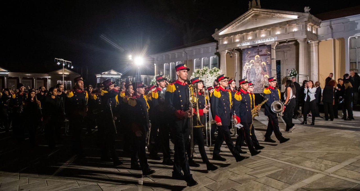 Σύμφωνα με το πρόγραμμα της όλης τελετής, οι δύο Επιτάφιοι θα καταλήξουν στην Πλατεία 28ης Οκτωβρίου γύρω στις 9.30 μ.μ. Από τις 8.00 μ.μ., θα μεταδίδονται ηχητικά στην Πλατεία Εγκώμια του Επιταφίου Θρήνου, σύμφωνα με το πνεύμα της η-μέρας της κορύφωσης του Θείου Δράματος.