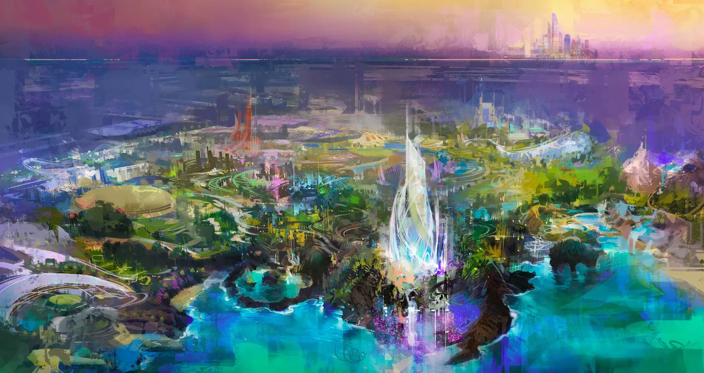 Ένα σπειροειδές κάστρο που μοιάζει σαν να είναι φτιαγμένο από κρύσταλλο βρίσκεται στο κέντρο των απεικονίσεων ενός νέου θεματικού πάρκου της Disney που σχεδιάζεται για το Άμπου Ντάμπι, σύμφωνα με το NPR.