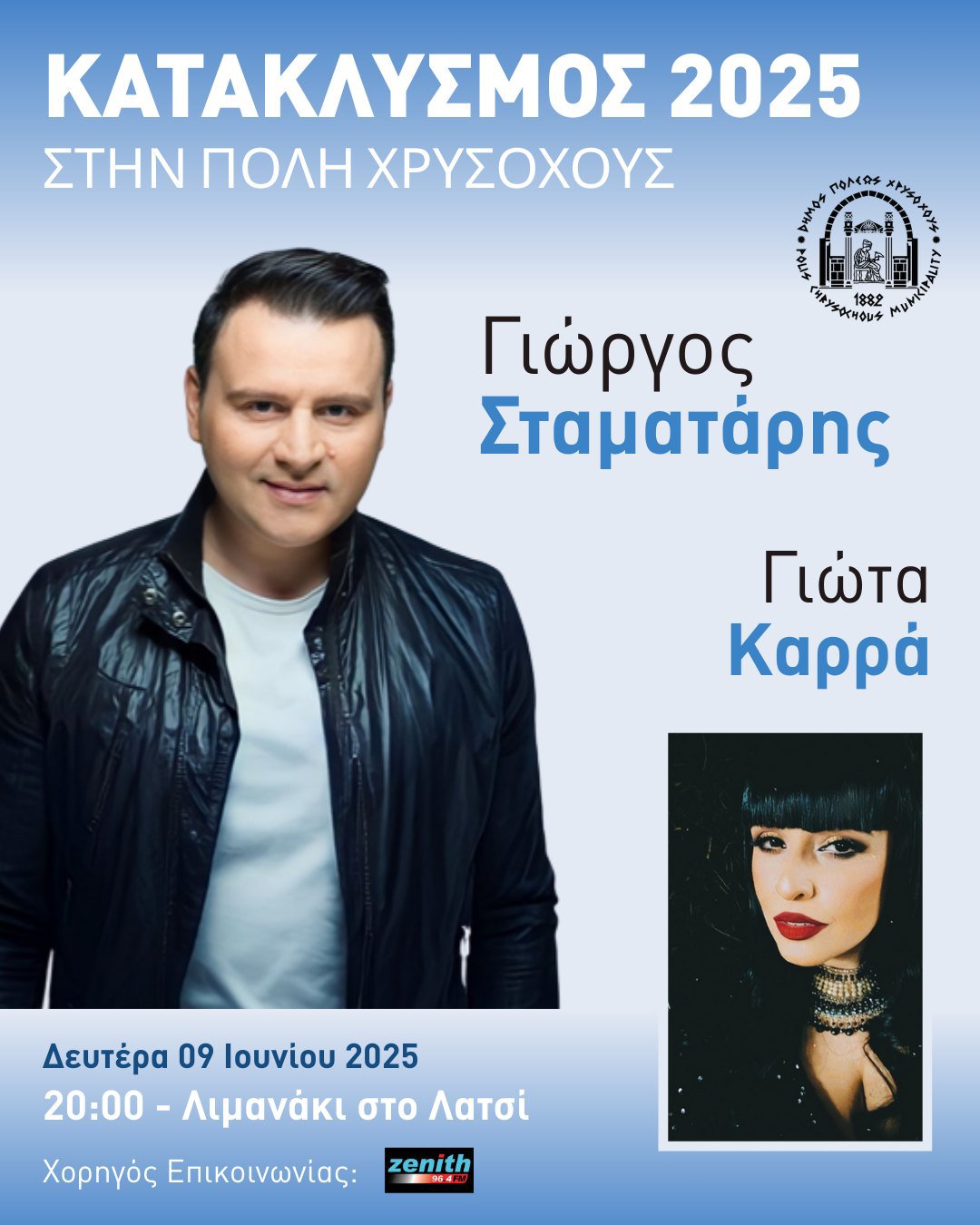 Ο Γιώργος Σταματάρης και η Γιώτα Καρρά έρχονται να κλείσουν το τριήμερο του Κατακλυσμού με τραγούδια που αγαπήσαμε — και να μας χαρίσουν ένα βράδυ που θα θυμόμαστε.
