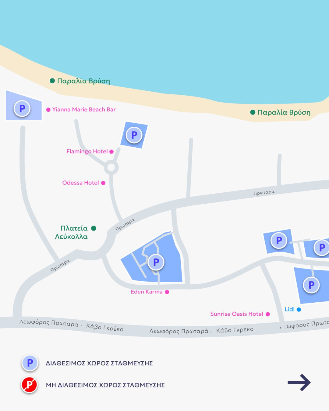 Στον χάρτη που επισυνάπτεται είναι σημειωμένοι οι χώροι στάθμευσης για διευκόλυνση του κοινού.