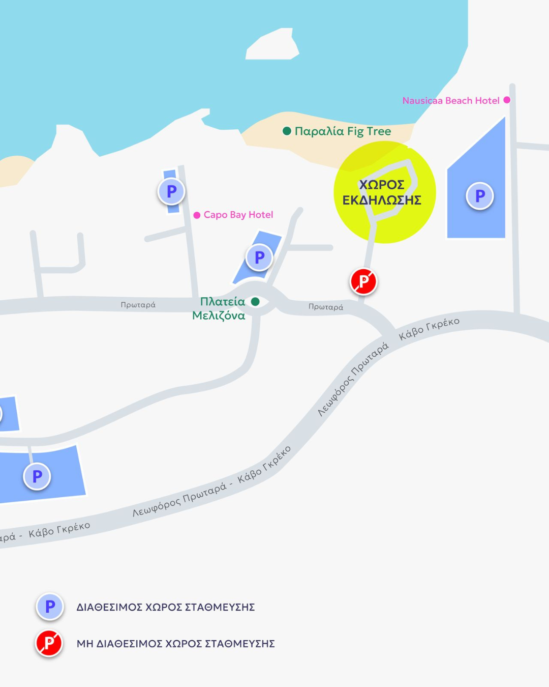 Τονίζεται ότι ο χώρος στάθμευσης της παραλίας Fig Tree Bay όπου θα πραγματοποιηθούν οι εκδηλώσεις θα είναι κλειστός για στάθμευση από τα ξημερώματα του Σαββάτου 7 Ιουνίου 2025 μέχρι και τη Δευτέρα 9 Ιουνίου 2025 και θα απαγορεύεται η είσοδος σε αυτόν.