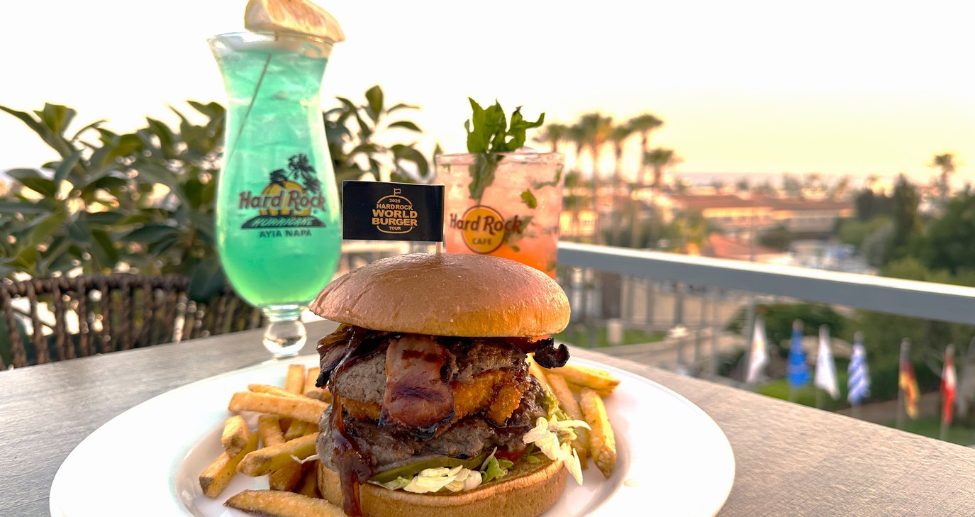 Στην καλοκαιρινή μας εξόρμηση επιλέξαμε την Αγία Νάπα και συγκεκριμένα το Hard Rock Cafe Ayia Napa, με στόχο να δοκιμάσουμε το burger που εκπροσωπεί την Κύπρο στον παγκόσμιο διαγωνισμό World Burger Tour του Hard Rock International. Το Coumandaria Smashed Burger, δημιουργία του φημισμένου σεφ Σταυρή Γεωργίου, διεκδικεί μια θέση στην πεντάδα της πρόκρισης – και από την πρώτη μπουκιά καταλάβαμε γιατί.