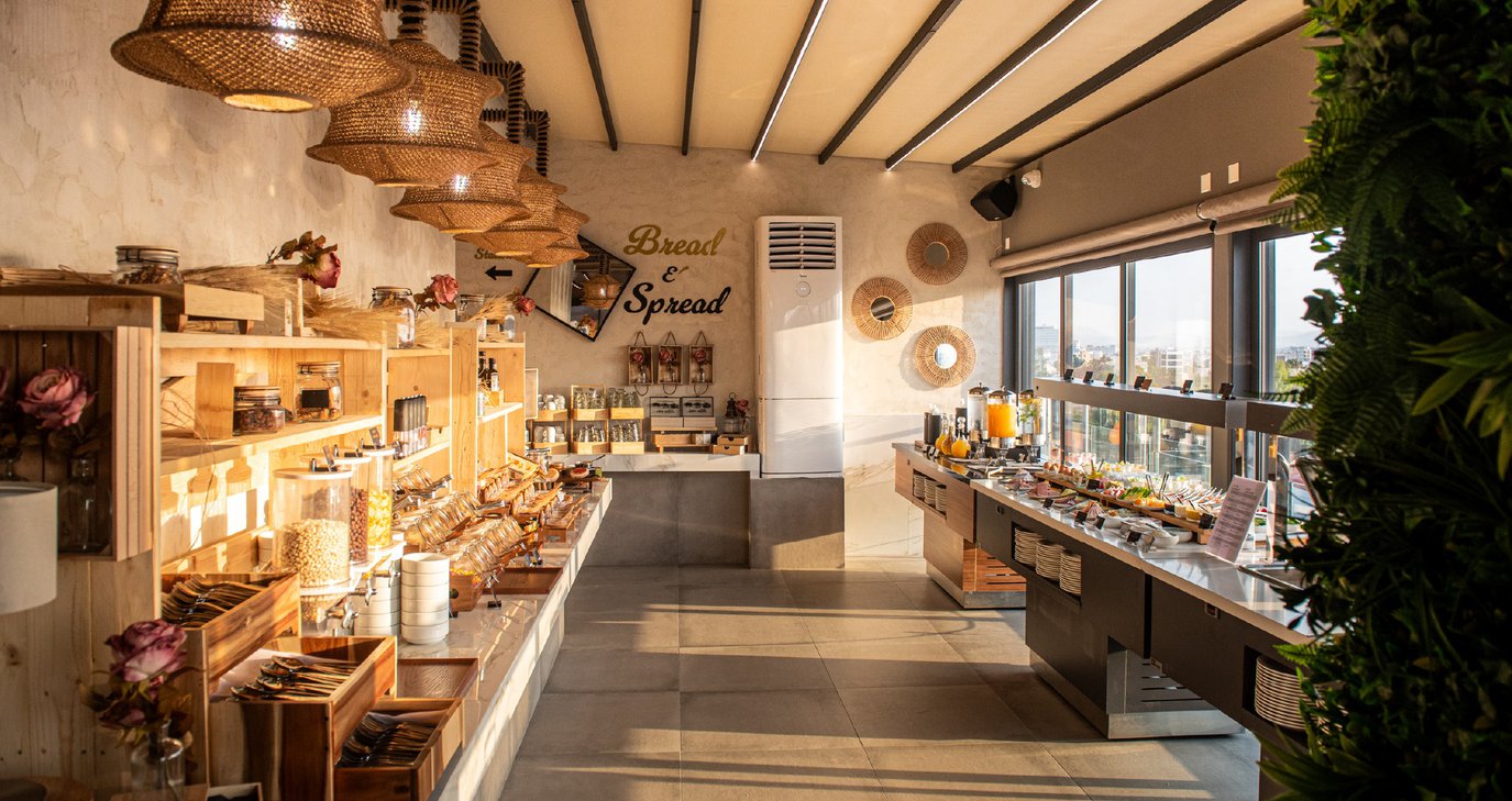 Η Λάρνακα τα τελευταία χρόνια εξελίσσεται σε πραγματικό παράδεισο του brunch, και το Bread & Spread έρχεται να το αποδείξει, με τον πιο απολαυστικό τρόπο – πάνω από τα κεραμίδια της πόλης. Βρισκόμενο στην ταράτσα του ξενοδοχείου The Rise Urban Art Hotel στο κέντρο, το νέο αυτό στέκι έχει καταφέρει να γίνει σημείο αναφοράς για όσους λατρεύουν να ξεκινούν τη μέρα τους με καφέ, θέα και… φωτογενές πιάτο μπροστά τους.