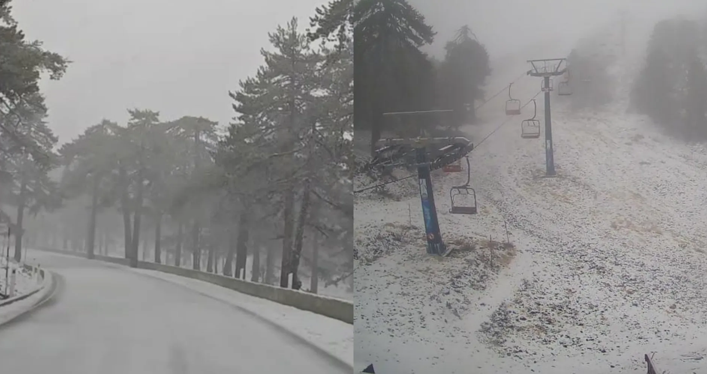 Χιονόπτωση καταγράφεται αυτή την ώρα στο Τρόοδος, με το τοπίο να ντύνεται στα λευκά, όπως φαίνεται και σε βίντεο που ανήρτησε στα μέσα κοινωνικής δικτύωσης το kitasweather.