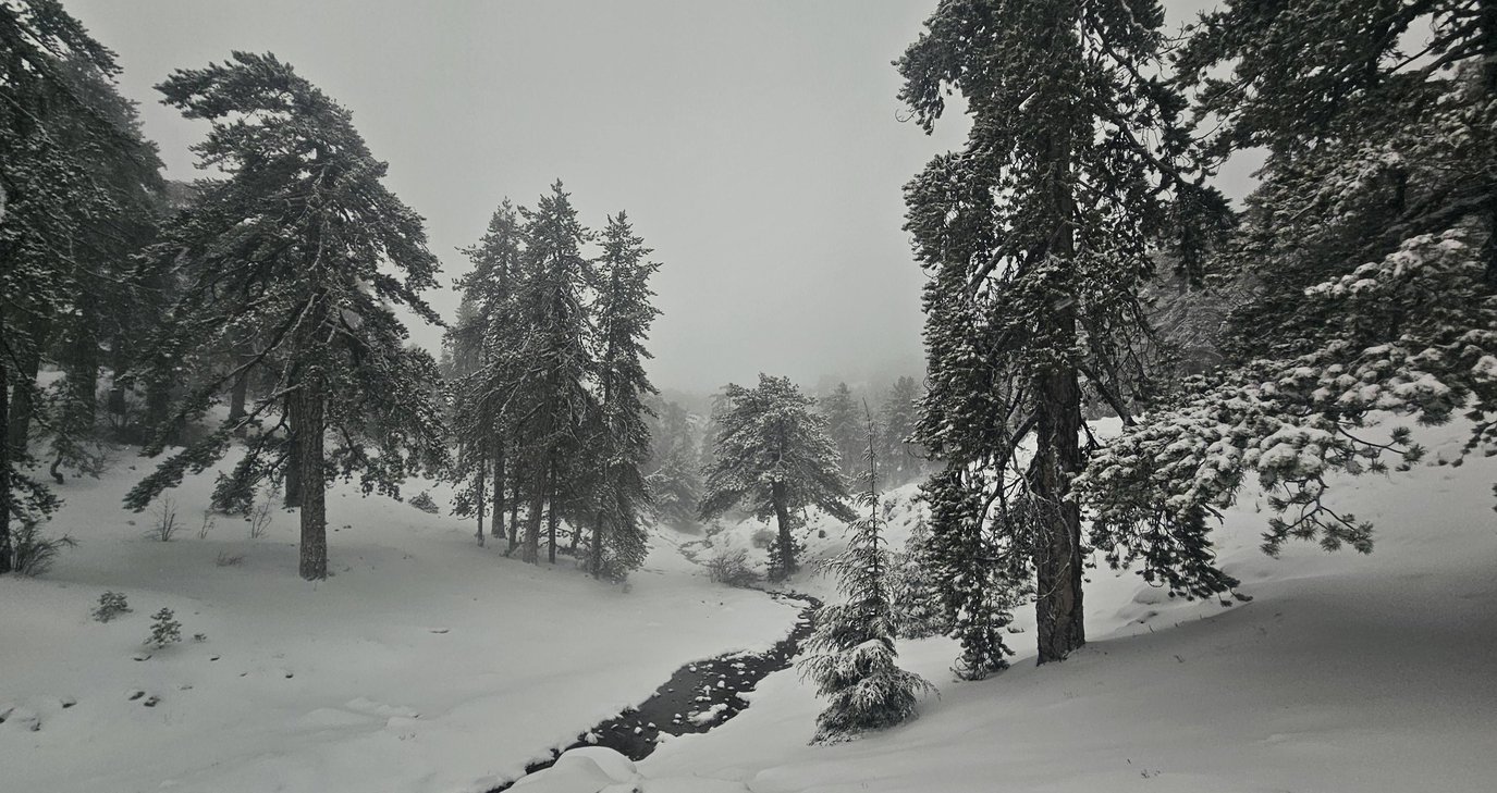 Στα λευκά ντύθηκαν ορεινές περιοχές της Κύπρου μετά τις χιονοπτώσεις των τελευταίων ωρών.