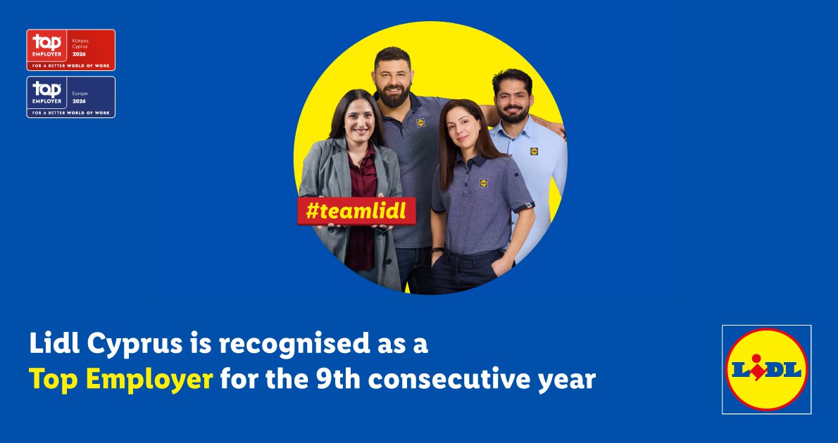 Εννιά συνεχόμενες χρονιές Top Employer για τη Lidl Κύπρου. Μια πορεία χτισμένη με συνέπεια, σταθερότητα και καθημερινές επιλογές που βάζουν τον άνθρωπο στο επίκεντρο.