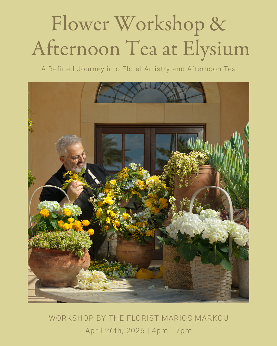 Σε συνεργασία με τον διακεκριμένο ανθοδέτη Μάριο Μαρκού του Minimal Flower, οι επισκέπτες θα έχουν την ευκαιρία να συμμετάσχουν σε ένα ιδιαίτερο εργαστήρι δημιουργίας ανοιξιάτικου στεφανιού, εμπνευσμένο από τη διαχρονική ομορφιά και τον συμβολισμό της Πρωτομαγιάς. Με έμφαση στη φυσική αισθητική και τα εποχιακά άνθη, το εργαστήρι προσφέρει μια ήρεμη και εμπνευσμένη δημιουργική εμπειρία.