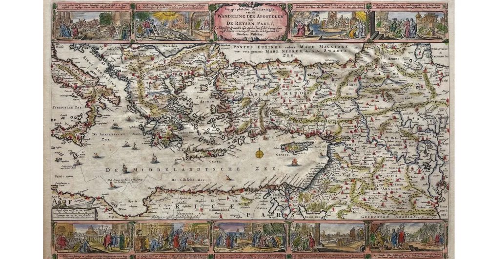 Παρουσιάζονται έργα διαφόρων τεχνικών και μεθόδων μέσα από τα οποία προβάλλονται πόλεις της Μεσογείου και ιστορικά γεγονότα. Γράφει, μεταξύ άλλων, ο συλλέκτης Α. Νίκολας: