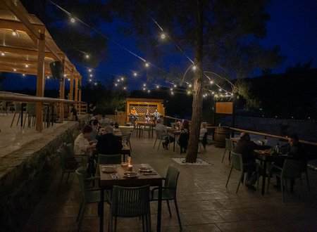 Φαγητό, ποτό και μουσική σε ένα υπέροχο μέρος στο χωριό