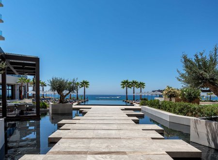 Το ξενοδοχείο με όλα τα δωμάτια και τις σουίτες του, χαρίζουν απρόσκοπτη θέα στο απέραντο γαλάζιο της Μεσογείου