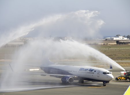 Υποδοχή με υφάτινη αψίδα, στο αεροδρόμιο Γλαύκος Κληρίδης