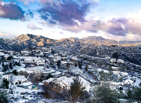 Το λευκό τοπίο σε πολλά χωριά της ορεινής και ημειορεινής Κύπρου δημιουργεί σήμερα πανέμορφες εικόνες