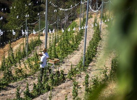Στις πλαγιές της Κυπερούντας ο Όμιλος Φώτος Φωτιάδης, έχει κατορθώσει να καλλιεργήσει λυκίσκο για πρώτη φορά στο νησί.