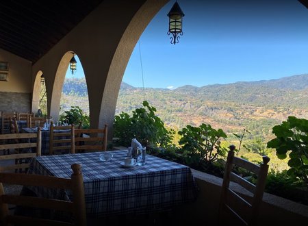 Κάνουμε στάση για παραδοσιακή κουζίνα, με υπέροχη θέα σε μία καταπράσινη κοιλάδα